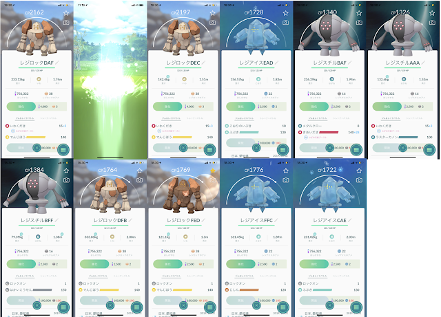 先の画像でネタバレとなっていますが,レジロックのみ色違いを捕獲することに成功。